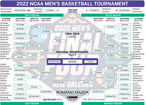 2022 NCAA bracket Printable March Madness bracket .PDF